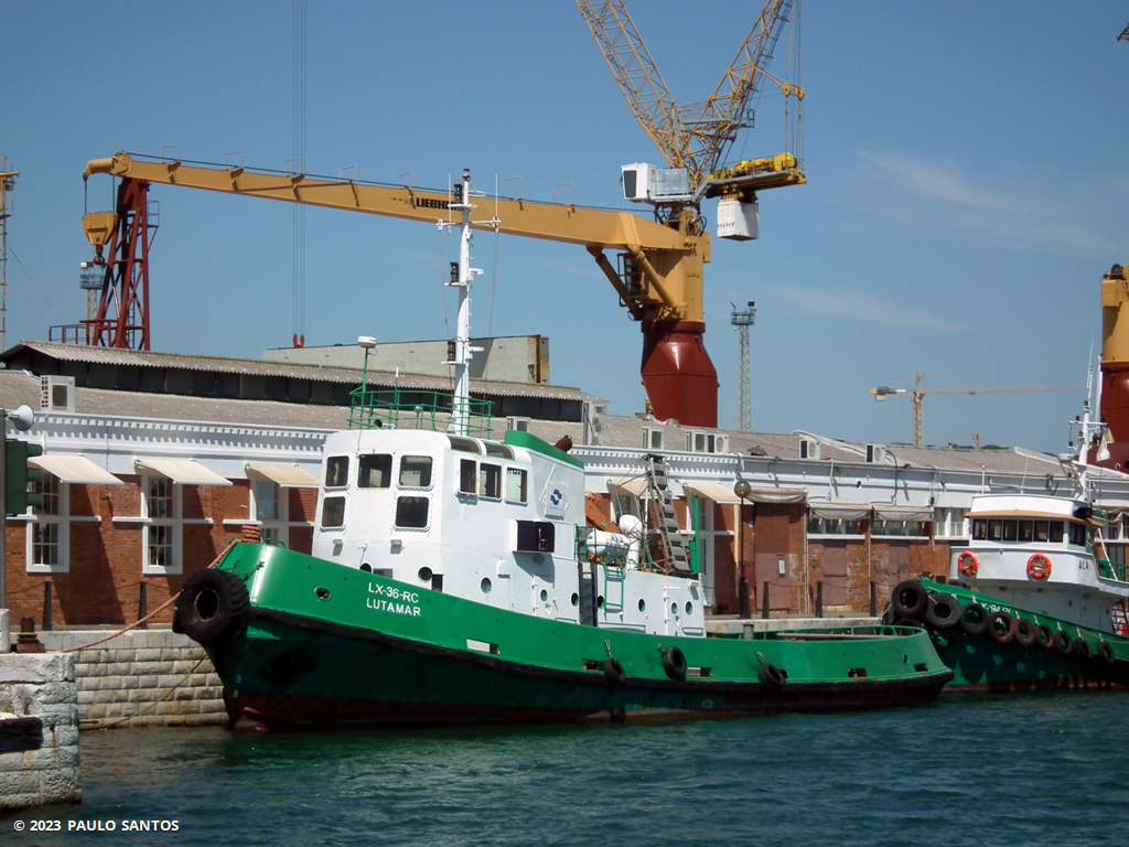 Rebocador operado pela Resistência (Grupo Lutamar) ¹ visto na entrada da Doca de Alcântara, Lisboa, em Maio de 2014. Este rebocador com o nome de "Lutamar" e registado LX-36-RC, é construído em Inglaterra pela Richards Shipbuilders (Lowestoft) ², completado em 1966, número de construção 483, e originalmente entregue a R. & J. H. Rea Ltd. (Bristol) com o nome de "Butegarth". Casco e superestrutura em aço. Tem um comprimento total de 25,58 m e está equipado com uma máquina principal Lister-Blackstone de 974 kW (1306 bhp) e hélice em tubeira "Kort" direccional, disponibilizando um esforço de tracção ³ de 20 toneladas. A velocidade máxima é de 10 nós. Como nota de interesse, o "Lutamar", originalmente "Butegarth", pertence a uma família de cinco rebocadores – "Lowgarth" (1965), "Butegarth" (1966), "Uskgarth" (1966), "Danegarth" (1966) e "Bargarth" (1966). Aqui, vemos o "Lutamar" junto à entrada para a Doca de Alcântara, acompanhado pelo "Ala". ●