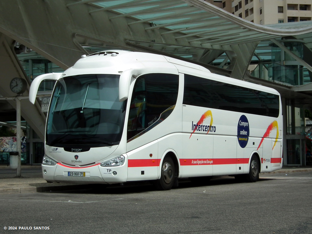 Coach operated by Joaquim Martins da Fonseca seen at Gare do Oriente, Lisboa, in August 2016. This coach with fleet number 233 is an Irizar PB registered in 2013. It uses a Scania chassis. Established in 1943 and based in Oliveira do Hospital, Joaquim Martins da Fonseca ¹ operates regular services, regular specialized services and occasional services. Here, we see this Irizar PB on an express service, wearing the "Intercentro" brand paint scheme. ●